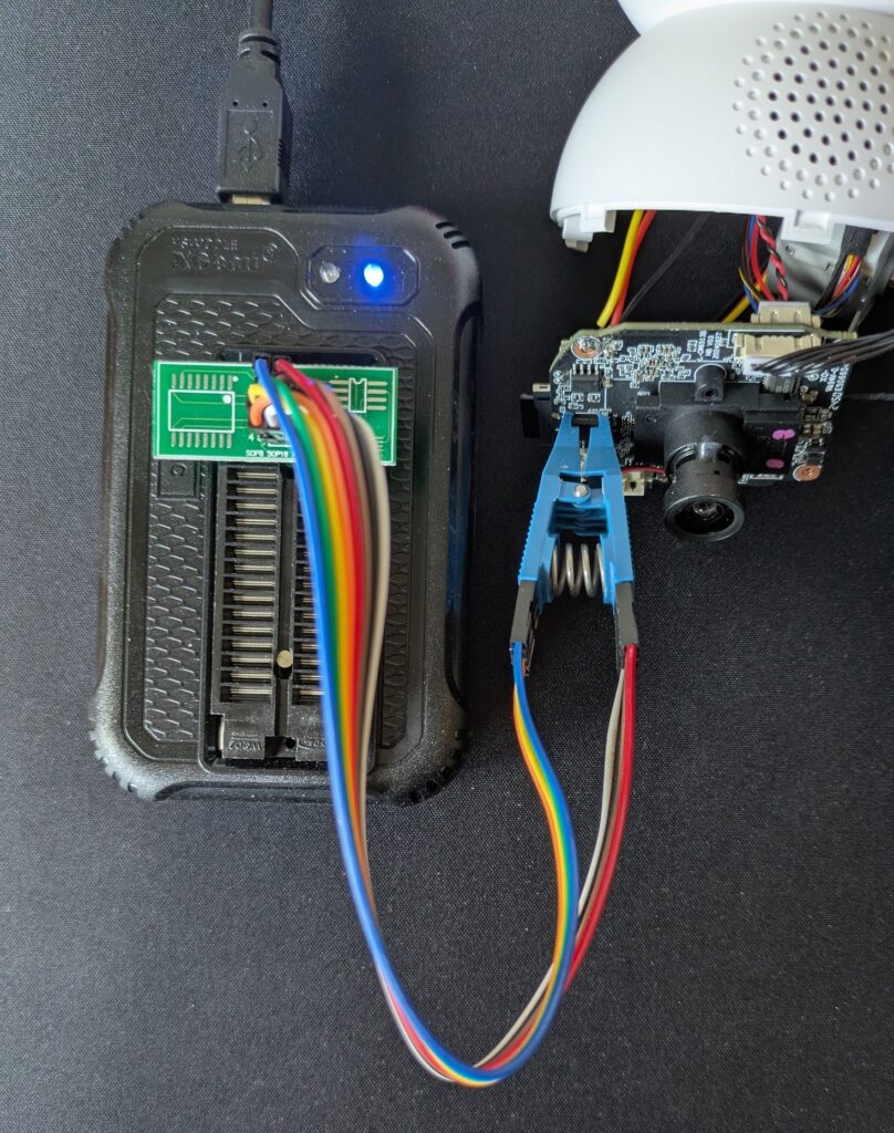 Zum Auslesen der Firmware nutzen wir den XGecu T48 Programmer (http://www.xgecu.com/EN/TL866_main.html) in Kombination mit einem SOIC-Clip.
