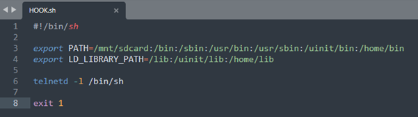 Zum Beispiel prüft die folgende „Funktion“, ob die Datei HOOK.sh unter einem bestimmten Pfad auf der Speicherkarte existiert. Ist die Datei vorhanden, wird sie als root ausgeführt: